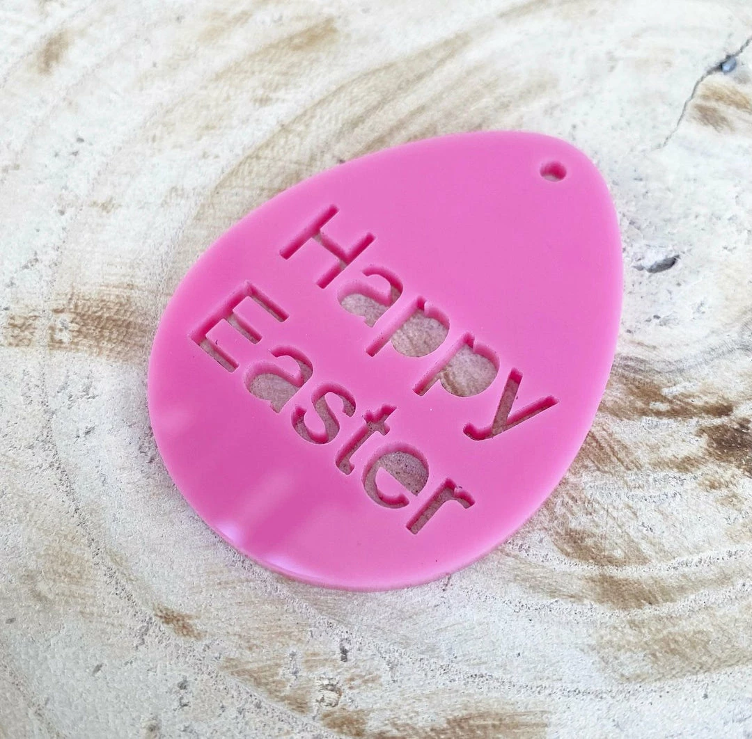 Allspex Cake Toppers, Plaques & Candles Pink Laser Cut Gift Tag ‘Happy Easter’ Block