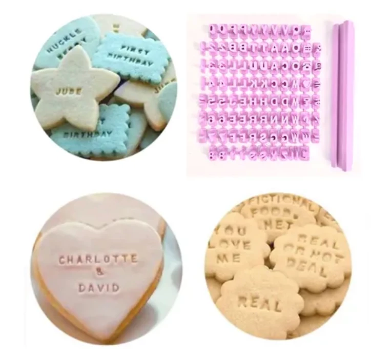 These cookie stamps are used to imprint messages, names, numbers on your cakes & cookies. Easy to use, made of safe and durable plastic, making them easy to wash.