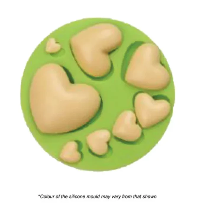 Multi heart themed silicone mould designed for use with fondant or modelling chocolate.Â