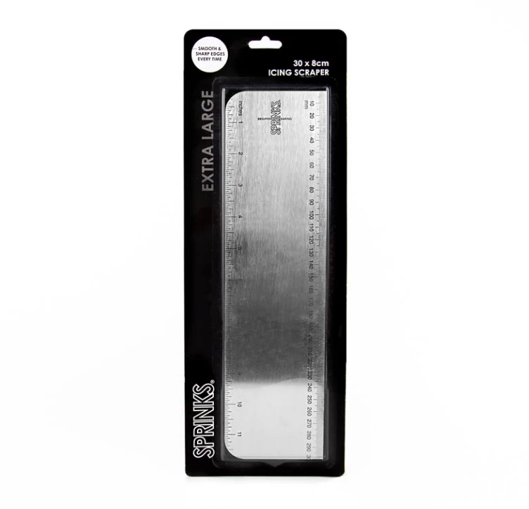 Ensure that you have smooth and clean edges on buttercream and ganache cakes with this easy to use stainless steel icing scraper.