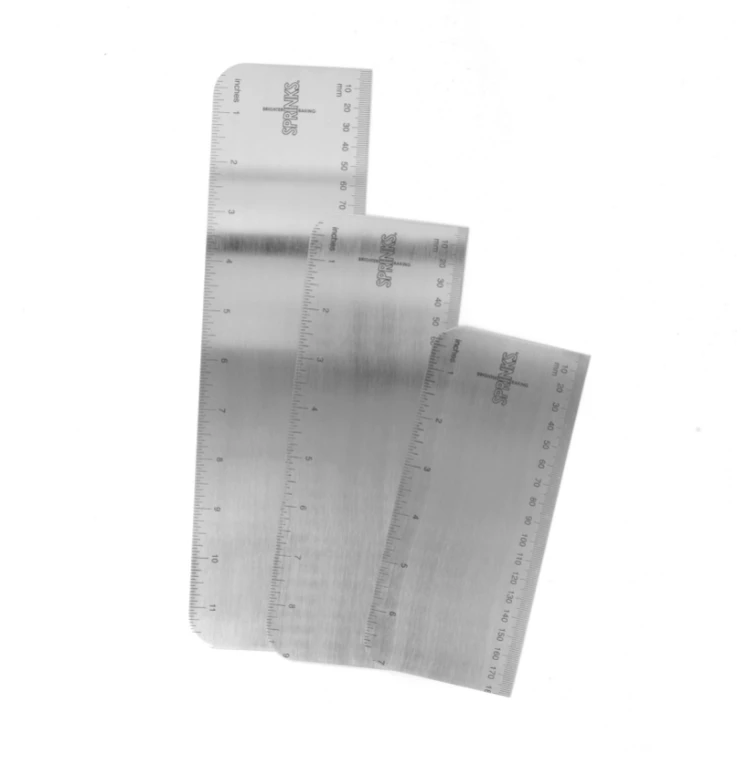 Includes measurements (inches and centimetres) on the side of the scraper.Â