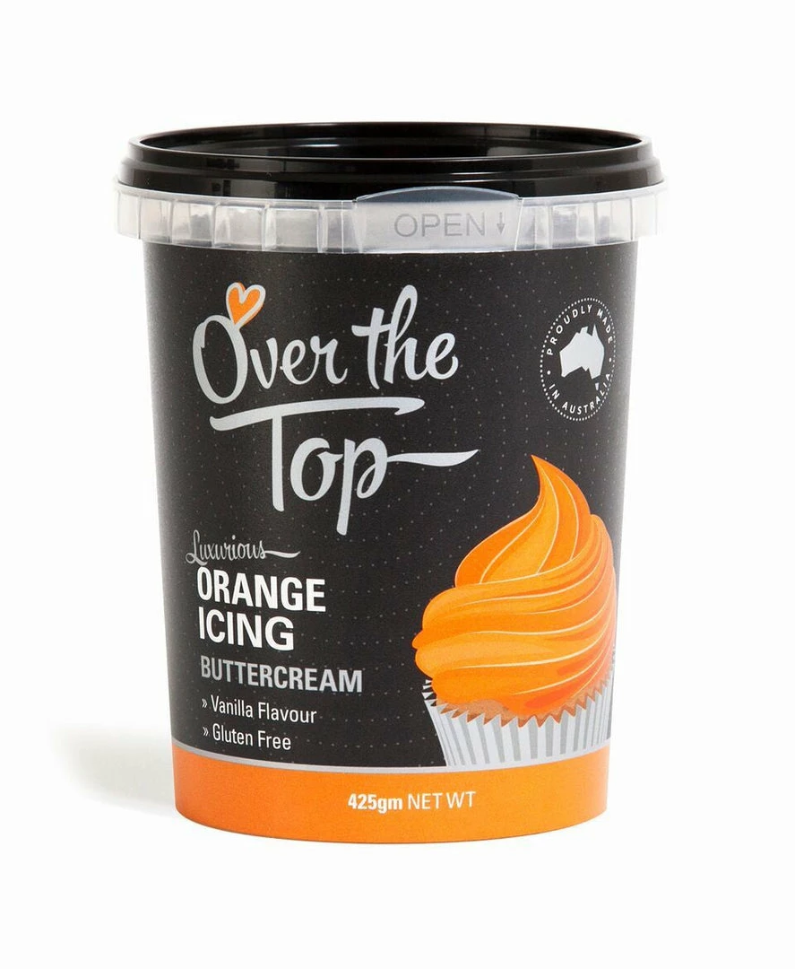 This ready to use vanilla buttercream icing in orange by Over the Top features a silky smooth texture with superior piping consistency. The Over the Top buttercream has a superior crusting buttercream style which is one that will set up firmly enough so that it can be touched lightly without leaving a mark. Crusting buttercream makes a strong base that you can later apply additional designs on.
