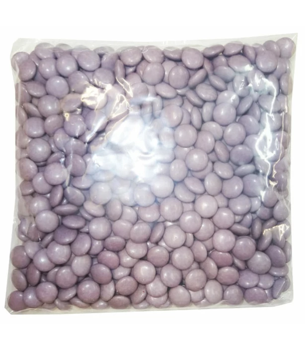 500g. These are single colour (purple) Choc Drops (sometimes also called Beanies) are an Australian made Smarties clone. These are sold as a single colour in a 500g bag.