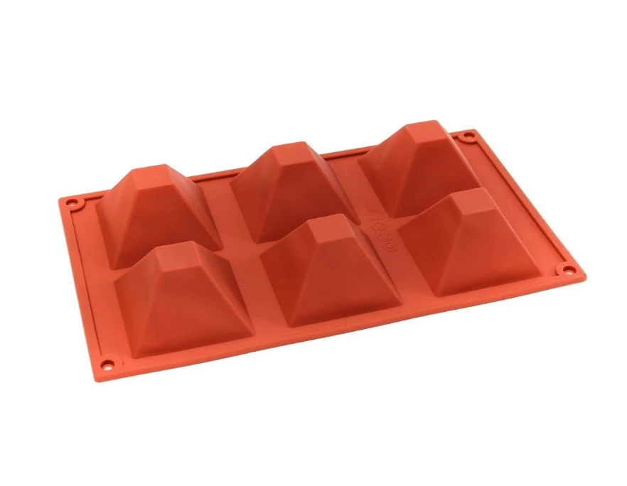 Silicone Baking Mould – 6-cavity Pyramid High quality silicone bakeware to make elegant pyramid-shaped desserts This versatile silicone mold makes up to 6 treats at a time. The pan is made out of high quality food-grade silicone with non-stick surface, allowing the baked goods to be released from the pan easily, and the pan can be easily cleaned and maintained.