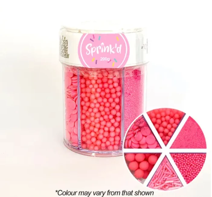 200g. 6 Cavity Jar including: Sugar balls, Jimmies, Sequins, Sanding Sugar.