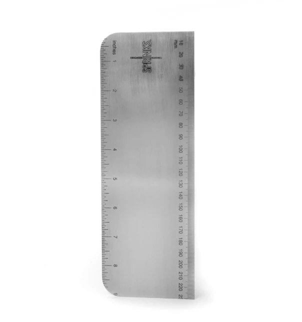 Includes measurements (inches and centimetres) on the side of the scraper.Â