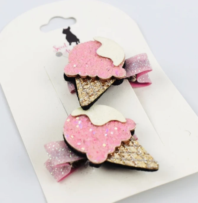 Glitter icecream hair clips. 2 Pack.Â