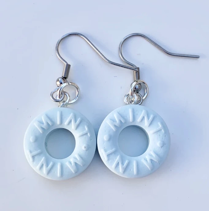 Cute Mint Green Lifesaver Dangle Earrings made with surgical steel Hooks and posts.Â